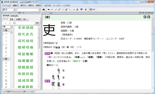 さらに漢字源ならではの検索方法として、『パーツ検索』『部首検索』『総画数検索』『読み検索』を利用できます。豊富な検索方法から目的に合った方法を選択することで、大幅な時間短縮につながります。