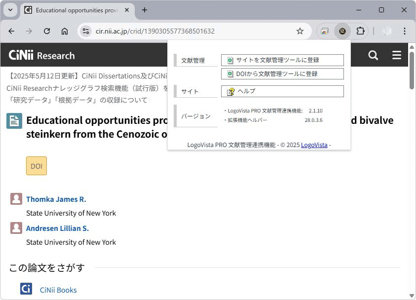 Webブラウザで閲覧している文献の情報を、LogoVistaの拡張機能から文献管理ツールに保存することができます。