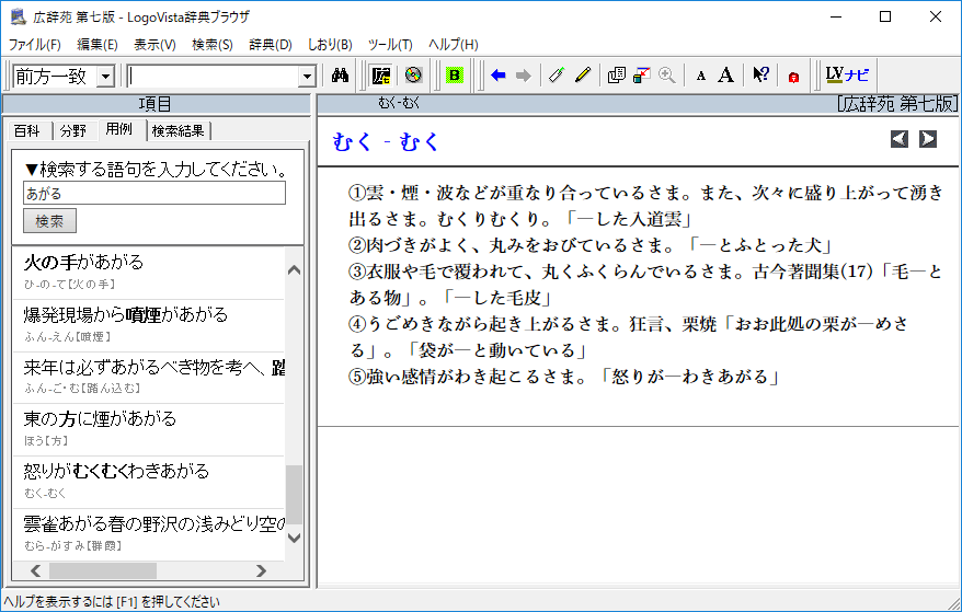書籍の目次を見るように、辞典の項目をたどって検索します。 |
