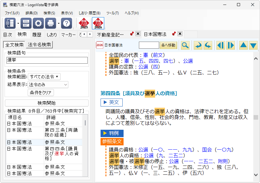 『模範六法 2026 令和8年版』は、1921年の創刊以来、学習と実務に役立つ判例付き法令集として多くの読者に支持されている書籍版「模範六法 2026 令和8年版」のWindows版です。収録法令375件。重要法令には判例要旨を収録。豊富な検索方法によって目的の法令・条数を瞬時に見つけだすことができます。また、カタカナの条文をひらがなに変換する、日本国憲法を英文版と比較する、といったことも可能です。
