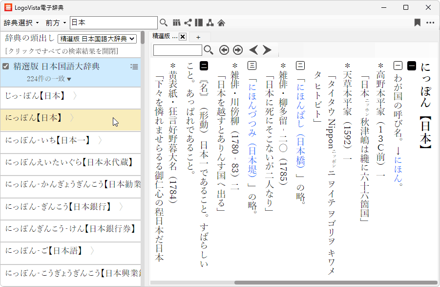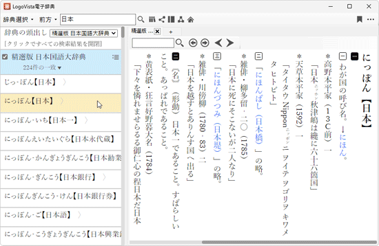 LogoVista電子辞典シリーズは、どの辞典タイトルでも共通の「LogoVista辞典ブラウザ」(辞典を検索・閲覧するためのビューワー)がインストールされます。