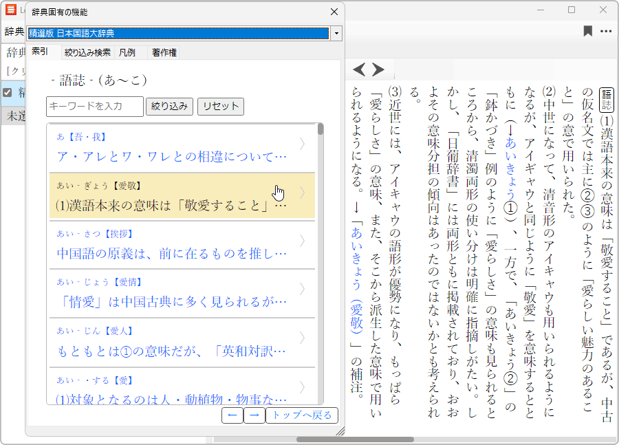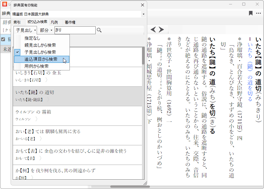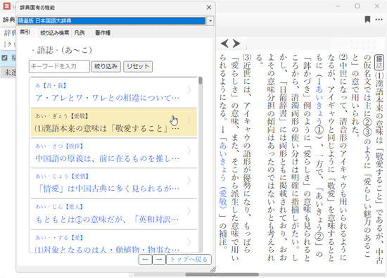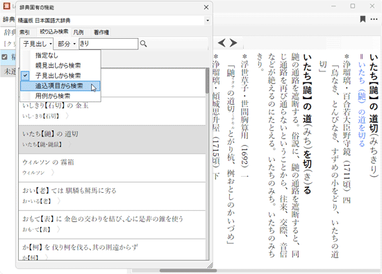 親見出し、小見出し、追い込み項目、用例から検索します。 |