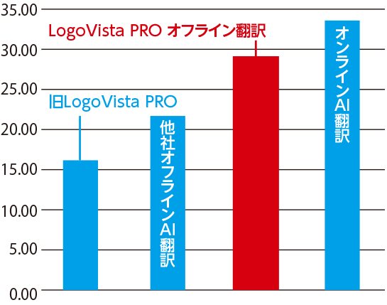 「LogoVista PROオフライン翻訳」は、最新のニューラル機械翻訳技術を搭載し、オンラインAI翻訳に引けを取らない高精度な翻訳を、オフライン環境でご提供します。