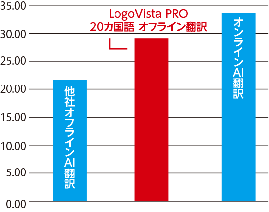 「BLEUスコアによる比較検証では、主要なオンライン翻訳サービスと同等の評価を記録しており、安心・安全な環境で高品質な翻訳をご利用いただけます。