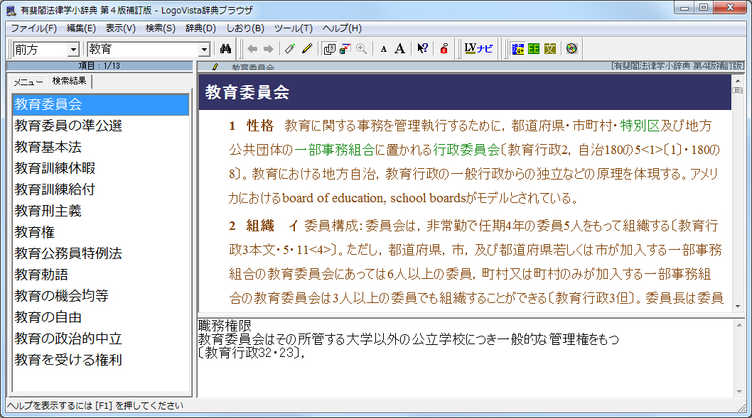 具体的な叙述で定評の法学学習辞典に、全法令を検索可能なツールをプラス!