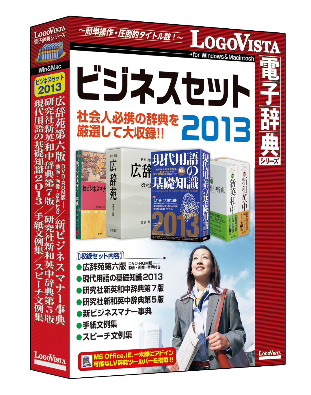 ロゴヴィスタ株式会社は、パソコン用電子辞典において絶対なる信頼と実績を誇るベストセラー「LogoVista電子辞典シリーズ」の新作として、Windows版および、Macintosh版『ビジネスセット 2013』を、2013年4月19日(金)より、パソコンショップ、カメラ系量販店、大手書店などで発売いたします。