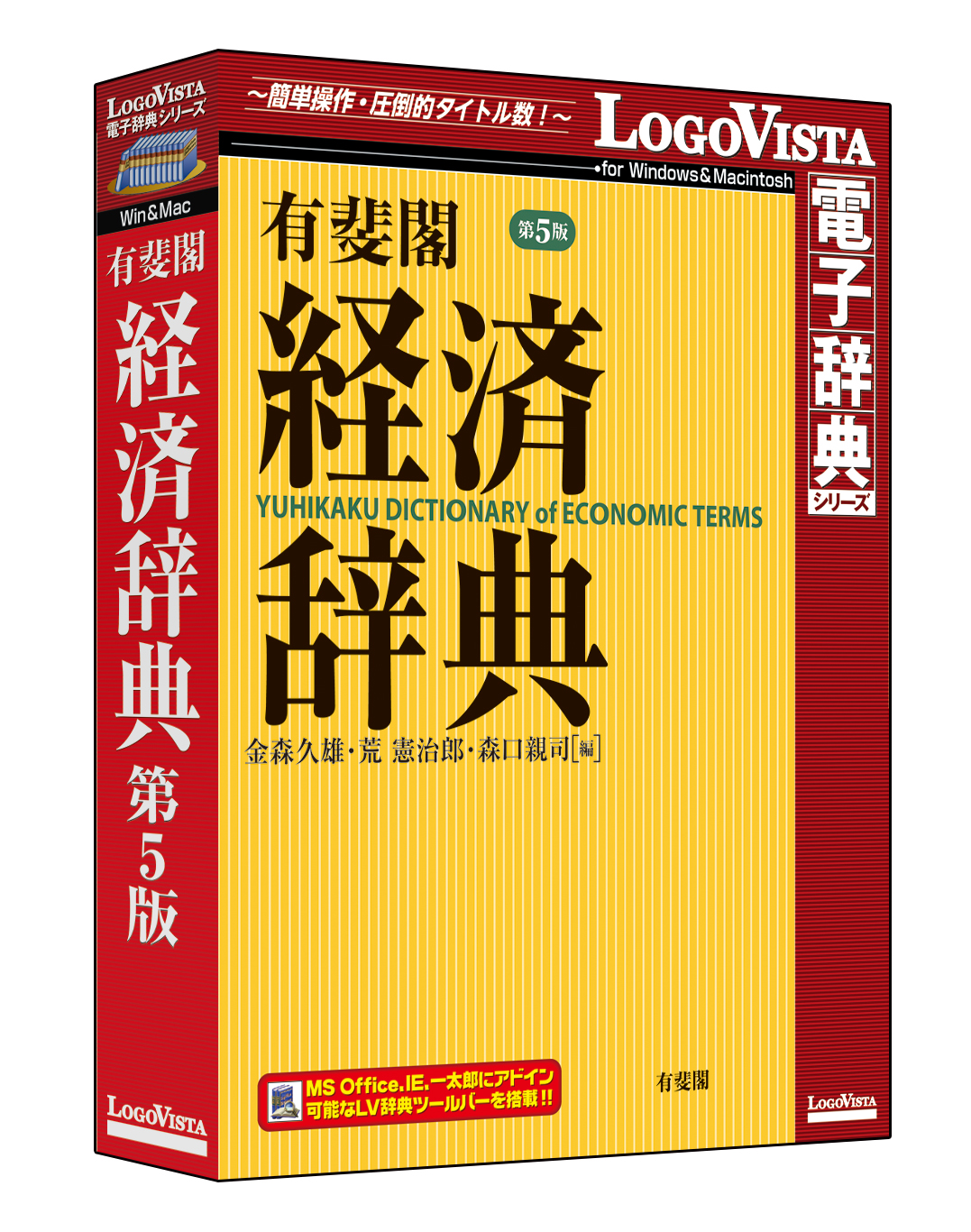 ロゴヴィスタ株式会社は、パソコン用電子辞典において絶大なる信頼と実績を誇るベストセラー「LogoVista電子辞典シリーズ」の新作として、Windows版および、Macintosh版『有斐閣経済辞典 第5版』を、2014年9月26日(金)より、パソコンショップ、カメラ系量販店、大手書店、ダウンロード販売サイトなどで発売いたします。