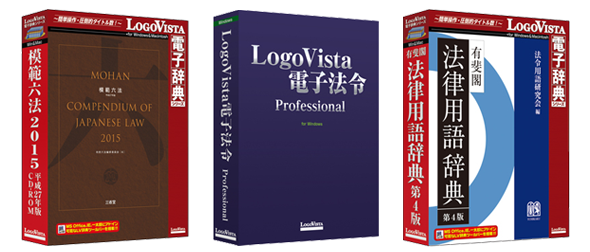 『法令・判例 特別セット』は、三省堂「模範六法 2015 平成27年版CD-ROM」、LogoVista電子法令 Professional、有斐閣 法律用語辞典 第4版をセットにし、半額にてご提供いたします。