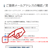 ユーザマイページの「ご登録メールアドレスの確認/変更」にて「ポイントに関するお知らせを受け取る」にチェックが入っていない場合、ポイントの有効期限が切れることをお知らせするメールが届きません。