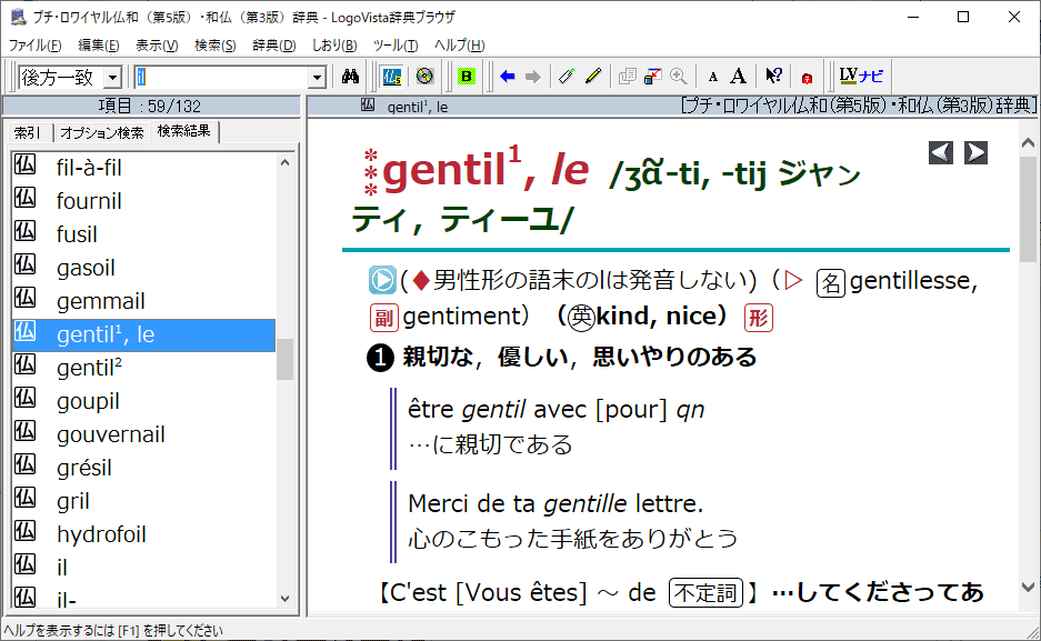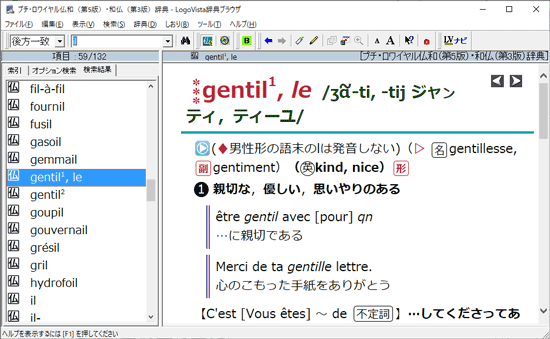 検索機能もパワフルです。複数の辞典をインストールして、同時に複数の辞書を検索できる串刺し検索は大変便利です。