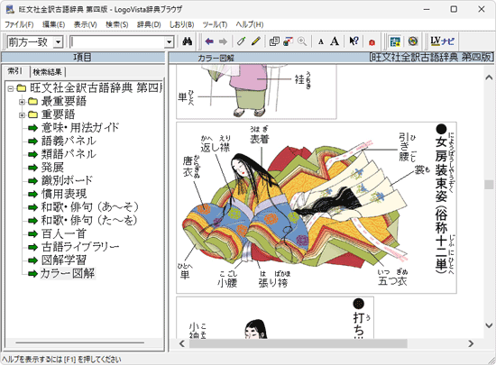 LogoVista電子辞典シリーズは、どの辞典タイトルでも共通の「LogoVista辞典ブラウザ」(辞典を検索・閲覧するためのビューワー)がインストールされます。