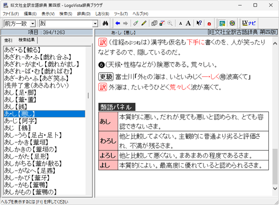 意味の似ている語を集めた「類語パネル」