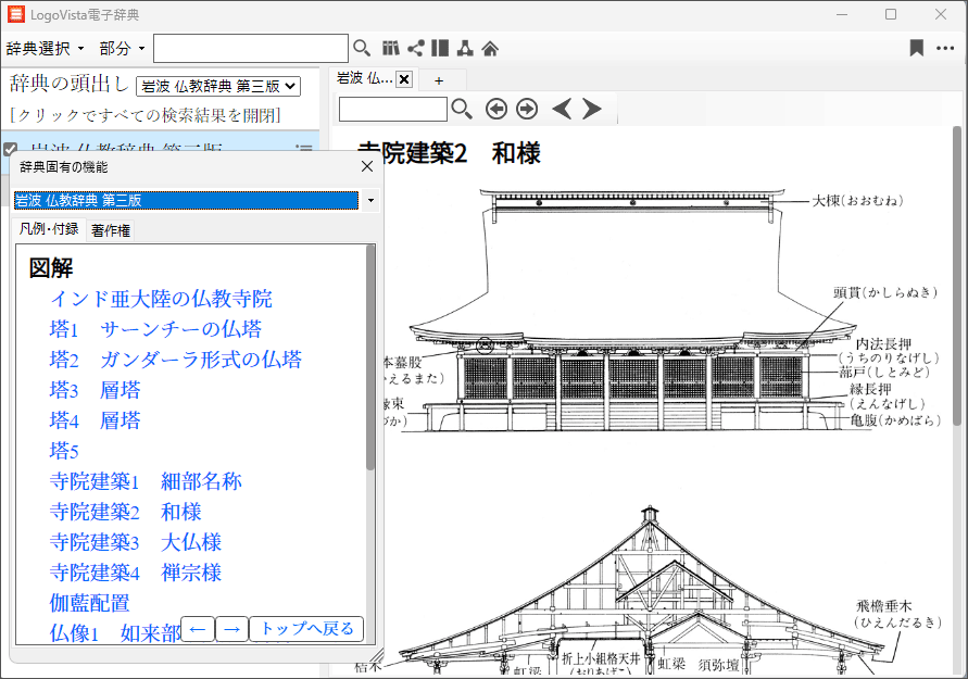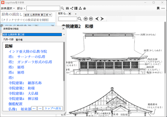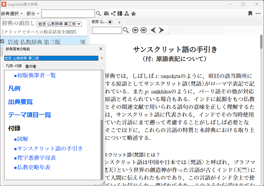 LogoVista電子辞典シリーズは、どの辞典タイトルでも共通の「LogoVista辞典ブラウザ」(辞典を検索・閲覧するためのビューワー)がインストールされます。