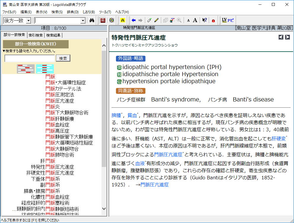 難解な医学用語も直感的に分かるKWIT(検索キーワードの中央一致)機能を搭載 |
