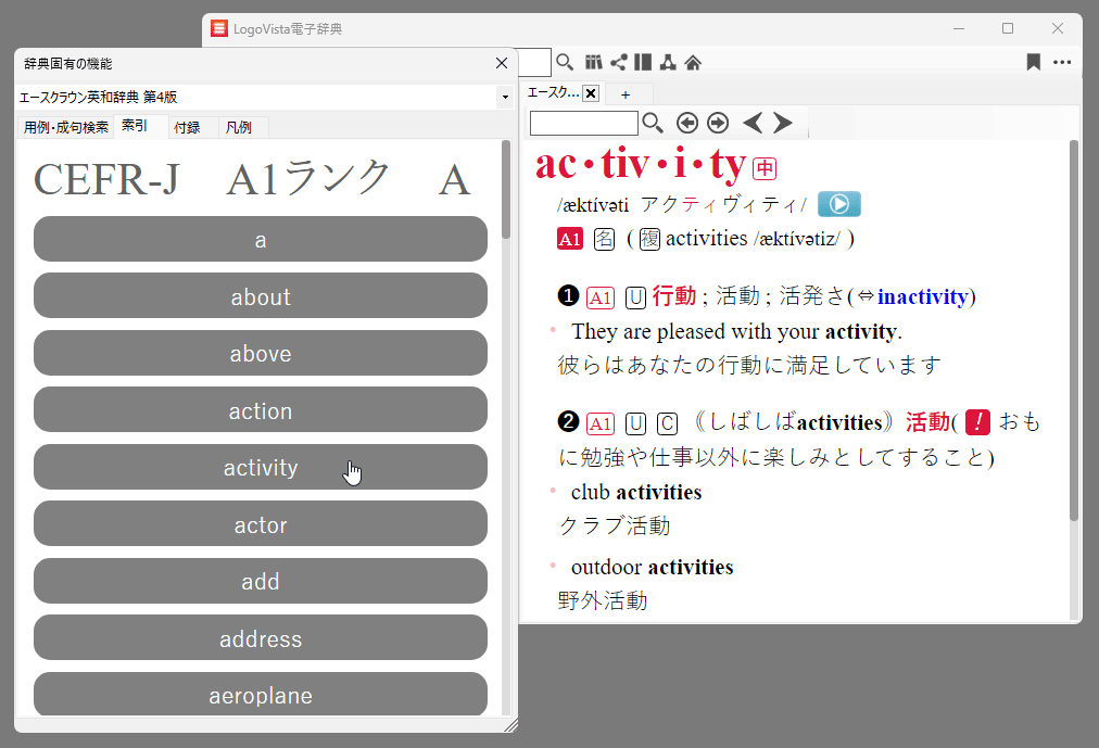 『エースクラウン英和辞典 第4版』は、語や語義の重要度を示す国際指標CEFRレベルの表示がいっそう充実。