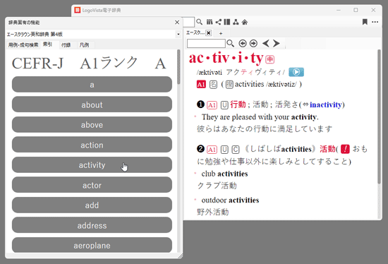 語や語義の重要度を示す国際指標CEFRレベルの表示がいっそう充実。