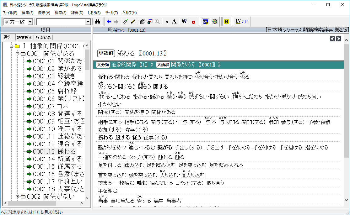 書籍の目次を見るように、辞典の項目をたどって検索します。 |