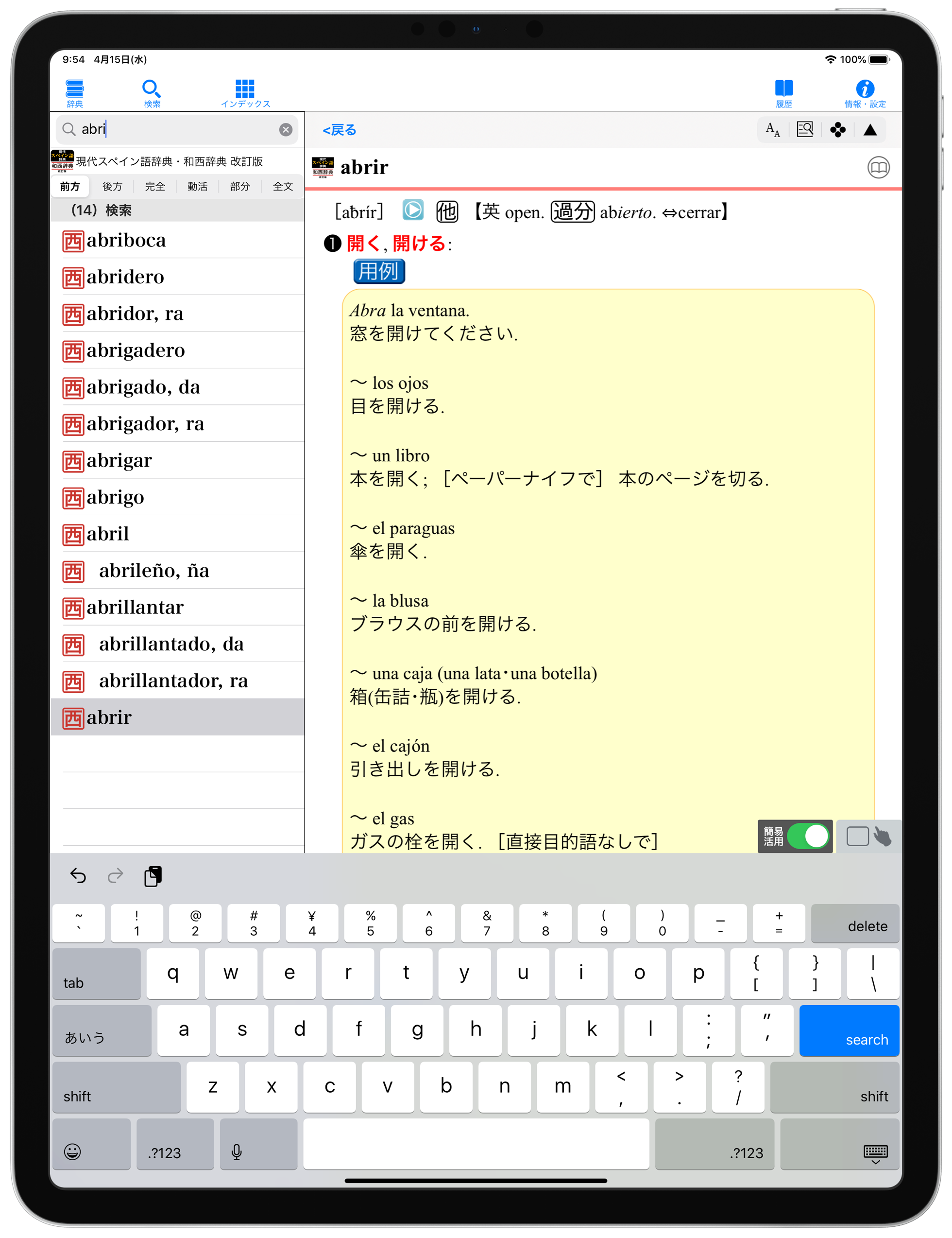 前方一致検索で辞典の見出し語にヒットしなかった場合に、語尾の活用形を変化させて再度検索する仕組みを組みを登載しました。 (現代スペイン語辞典 改訂版)