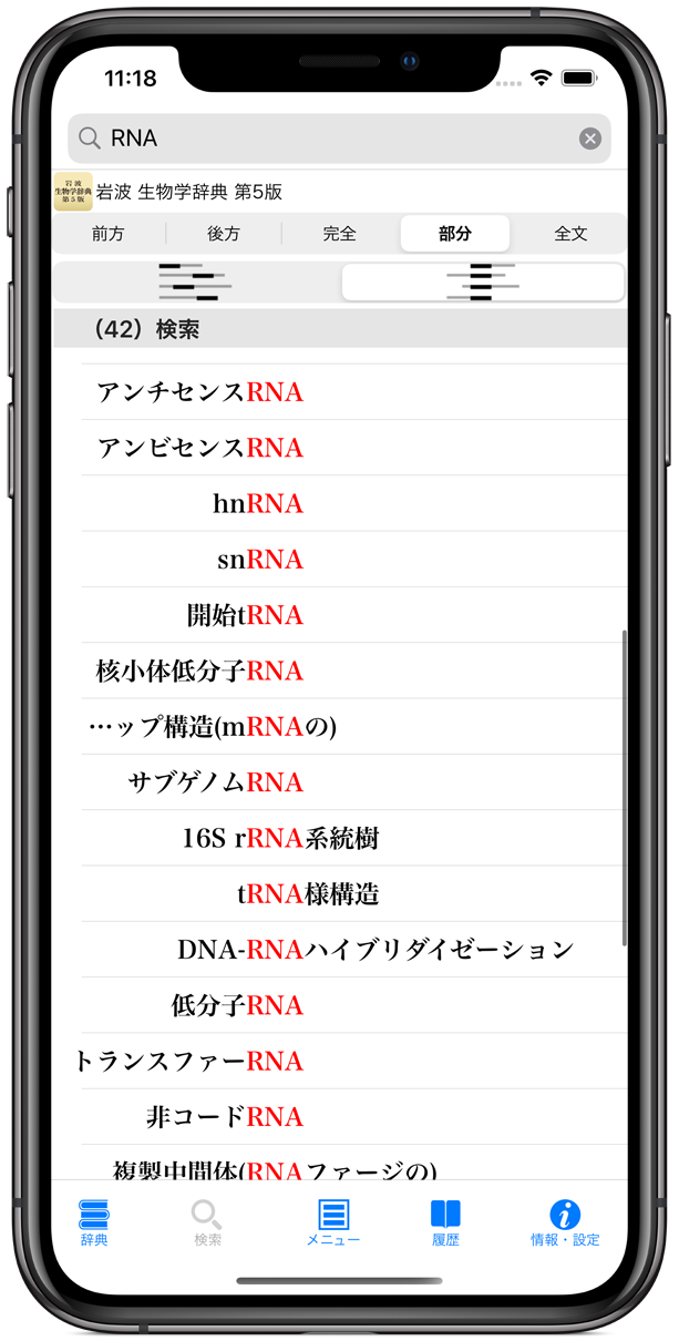 それぞれの検索方法で、文字を入力すると候補見出し語が表示されるインクリメンタルサーチに対応(部分一致/全文検索を除く)