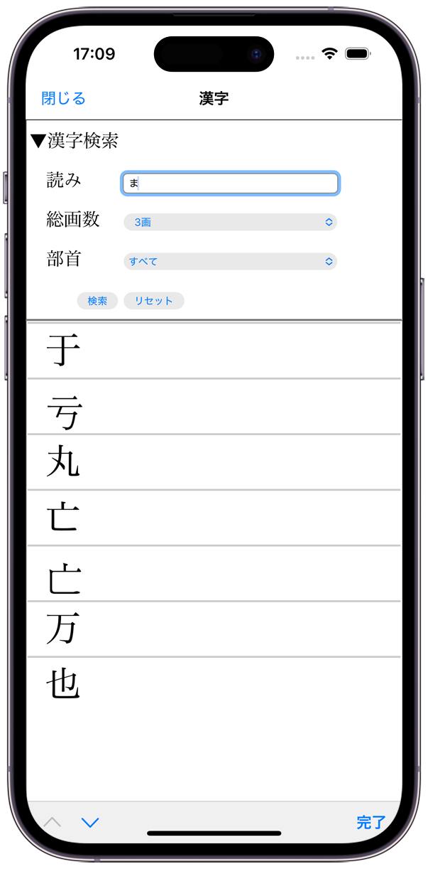 また、漢字検索では「漢字の読み」「漢字の総画数」「漢字の部首」から検索することが可能。