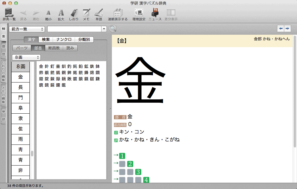ナンクロ検索・分類別索引・漢字検索があるから、普通の辞典では引けない語も簡単に引ける