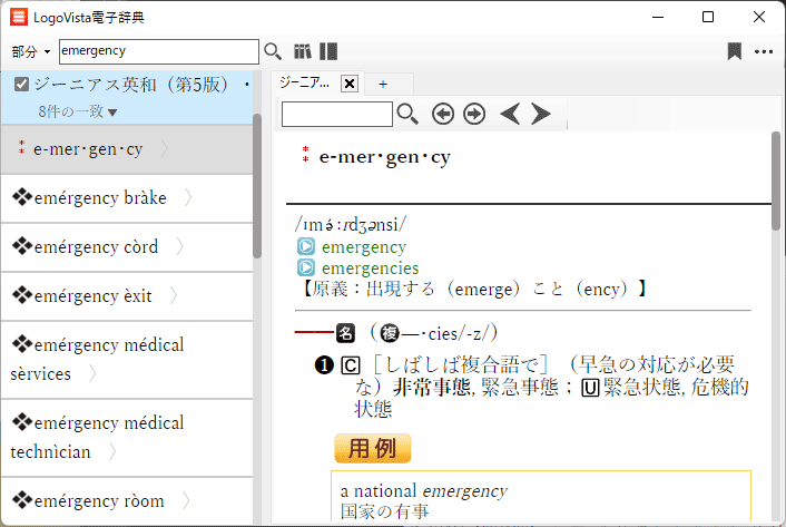 複数辞典の呼び出しも容易になり、手軽に串刺し検索が可能です。