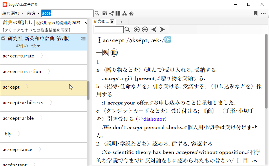 検索するたびに辞典を検索しなくても、ビジネスセットに収録されているすべての辞典をグループ化し、一度に辞書引きすることができます。