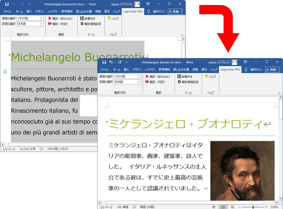 「LogoVista PRO 20カ国語 オフライン翻訳」は、最新のニューラル機械翻訳技術を搭載し、オンラインAI翻訳に引けを取らない高精度な翻訳を、オフライン環境でご提供します。