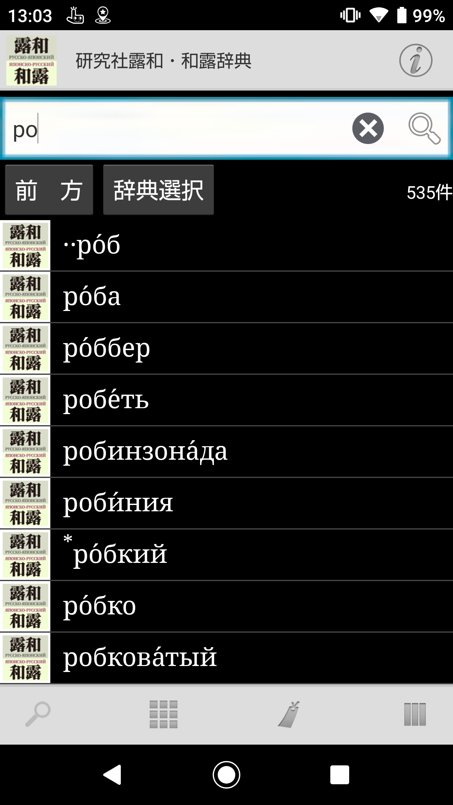 - キーワードの前方/後方/完全/部分一致+全文検索搭載で、露和・和露どちらもらくらく発見