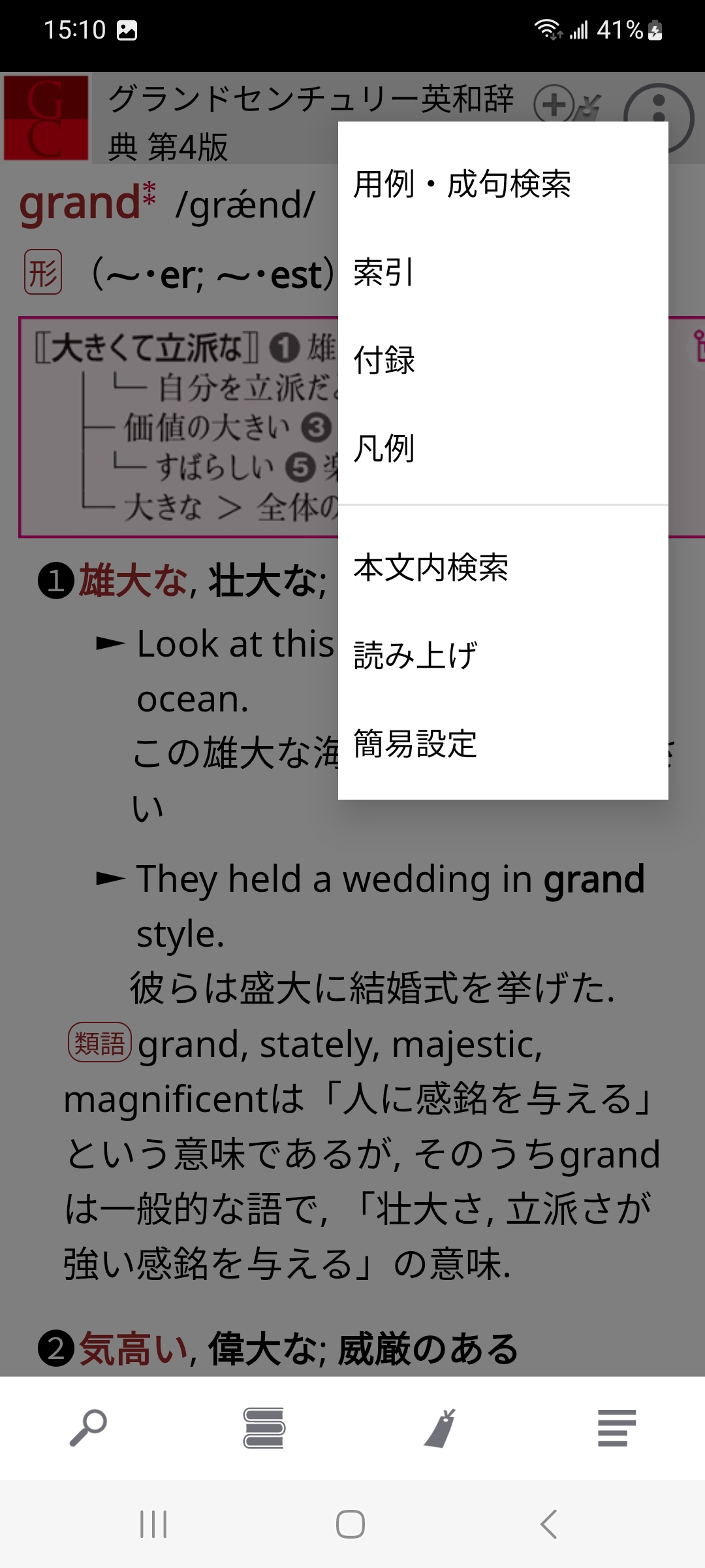 『グランドセンチュリー英和辞典 第4版』は、動詞文型を、多くの教科書・教材と同じSVOCロゴで詳細に表示。大学入試傾向を徹底分析し、出題頻度順にEX1/EX2の2段階で表示。ディスコースマーカー入門とともに入試に勝つ学習要素が満載の製品です。類書を圧倒する総収録項目数 英和7万6千/和英2万。収録用例数6万3千。言語文化コラム・語法コラムなど学習コラムも充実しています。