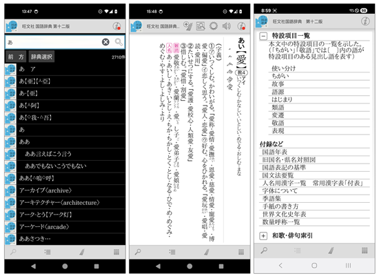 Windows版、Android版、iOS/macOS版「旺文社国語辞典 第十二版」を10月14日(火)より発売を開始いたしました。