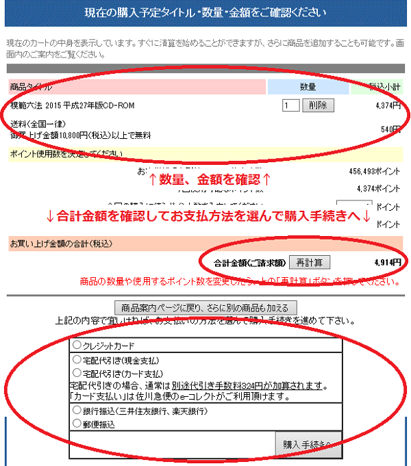 ↓ ↓ ↓ 3.下記画面に移動するので左側の青いボタンをクリックしてください。 (既にログインしている場合はこの画面に移動しません。その場合は【5】にお進みください。) ![]() ↓ ↓ ↓ 4.メールアドレス、パスワードを入力して「ログインする」ボタンをクリックしてください。 ![]() ↓ ↓ ↓ 5.数量、合計金額をご確認の上、お支払方法をお選びになり「購入手続きへ」ボタンをクリックしてください。 ![]() ↓ ↓ ↓ 6.ご注文フォームでお届け先情報、書類希望などご入力の上、ご注文を完了してください。 以上でWebでのご注文が完了いたします。 |