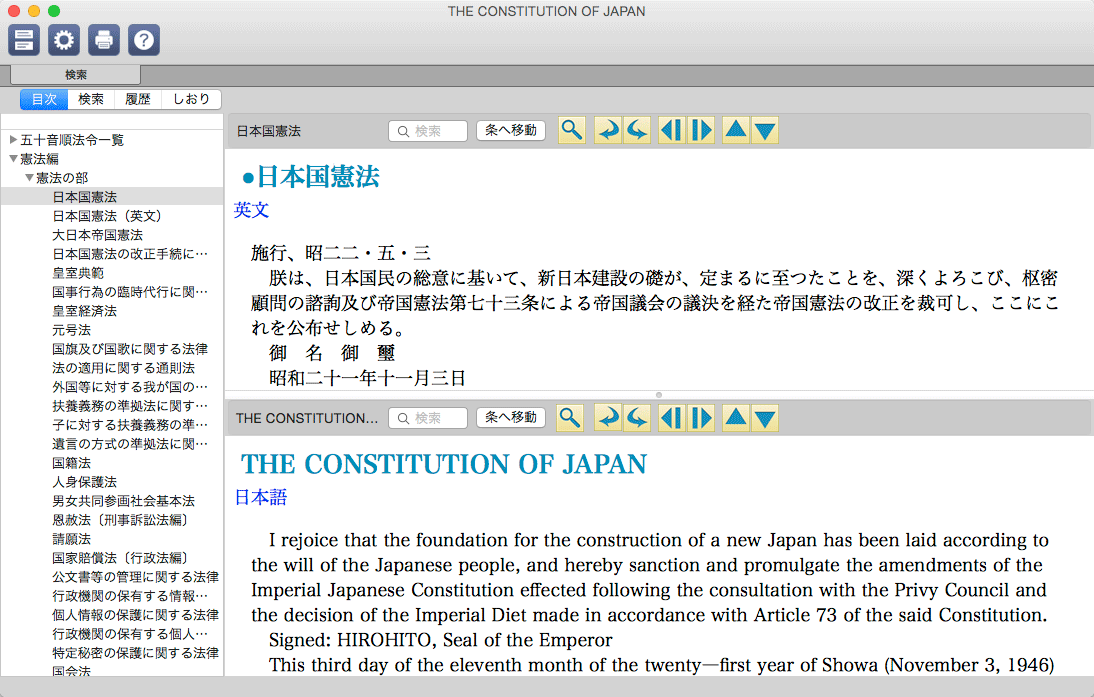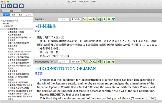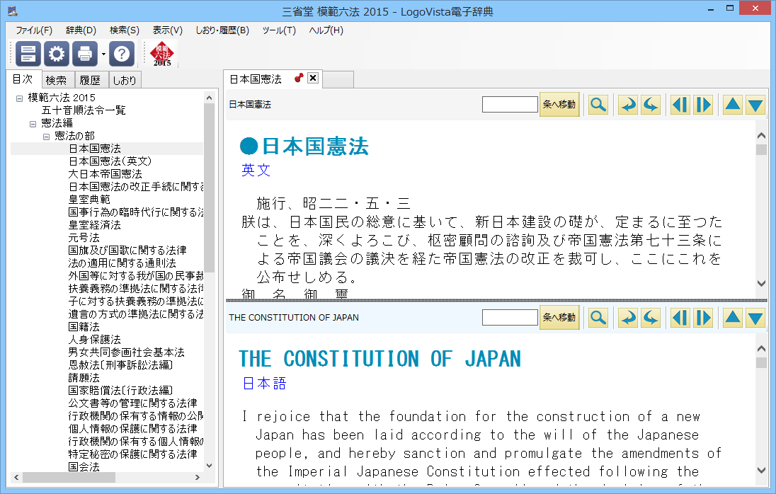 日本国憲法を英文版と比較可能