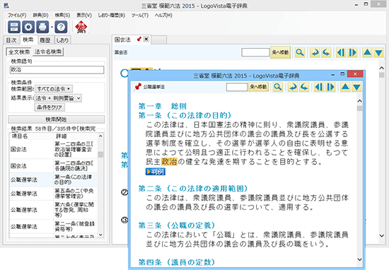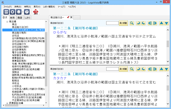 画面の分割、タブの追加により複数の法令、判例を同時に表示可能